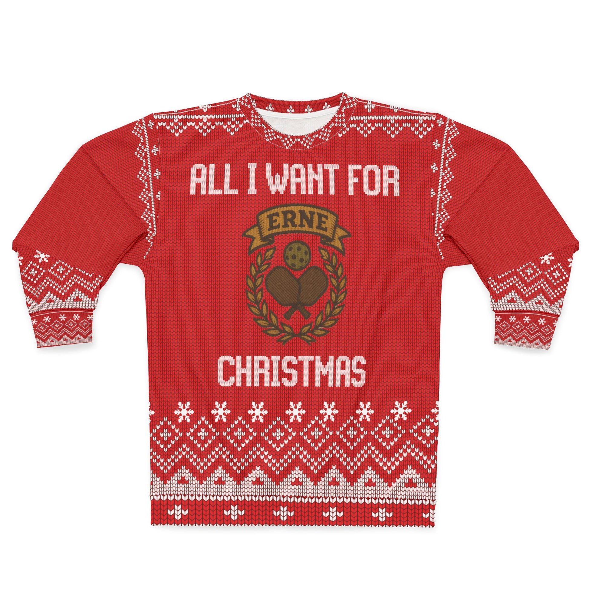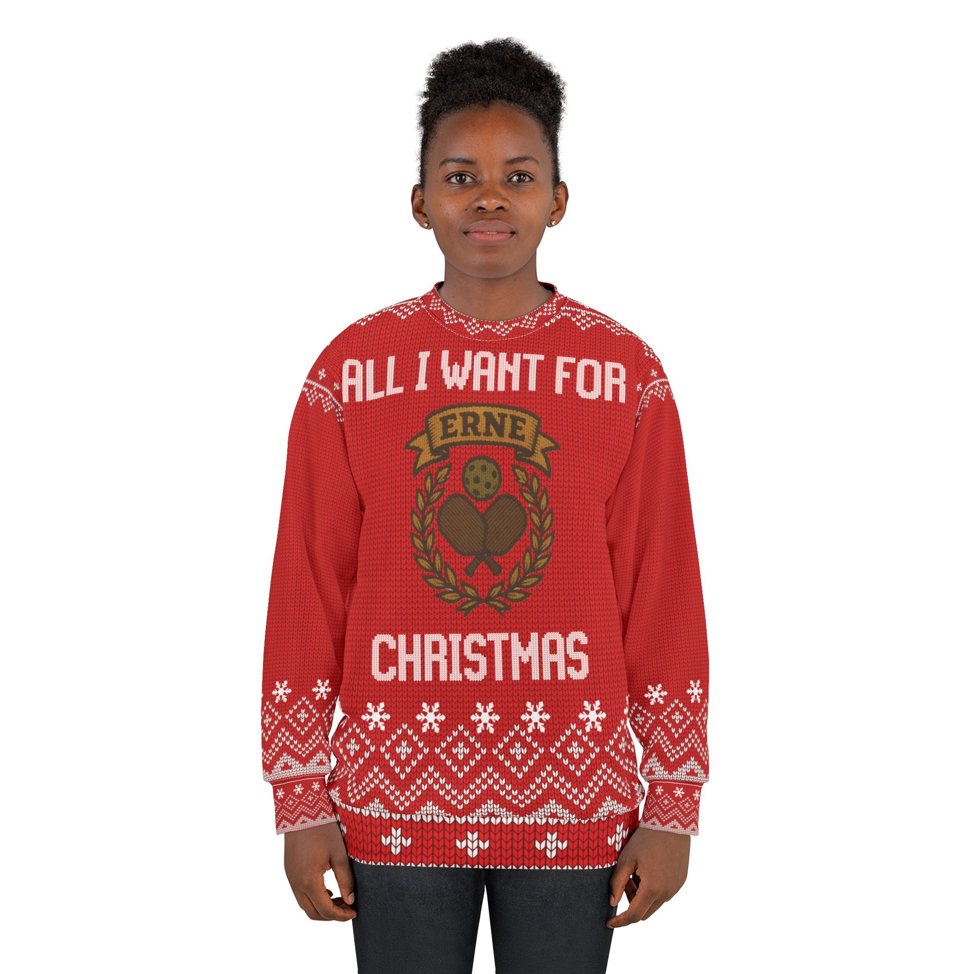 All I Want for Christmas is an Erne | Funny Pickleball Ugly Christmas Sweater | Holiday Sweatshirt Gift for Pickleball Players