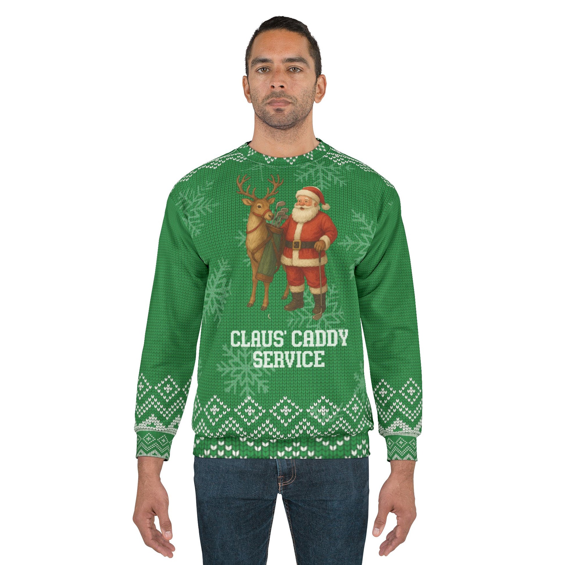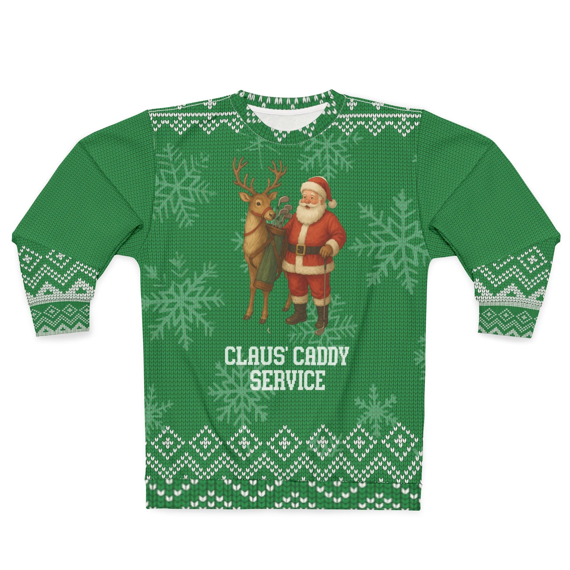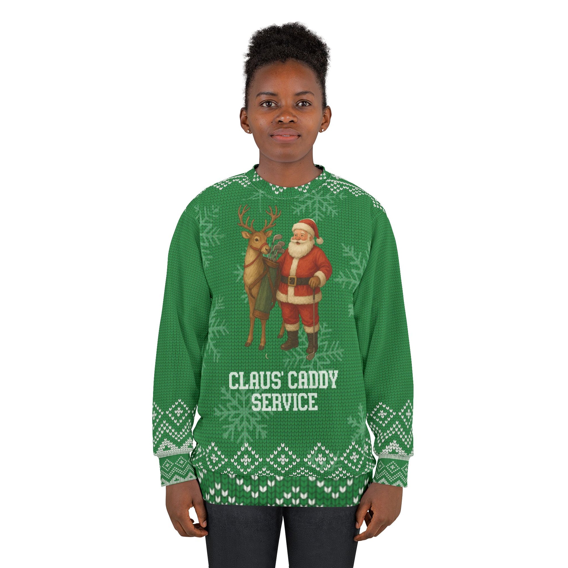 Claus’ Caddy Service Ugly Christmas Sweater – Funny Golf Christmas Sweatshirt | Holiday Sweater for Golfers, Christmas Gift for Him or Her