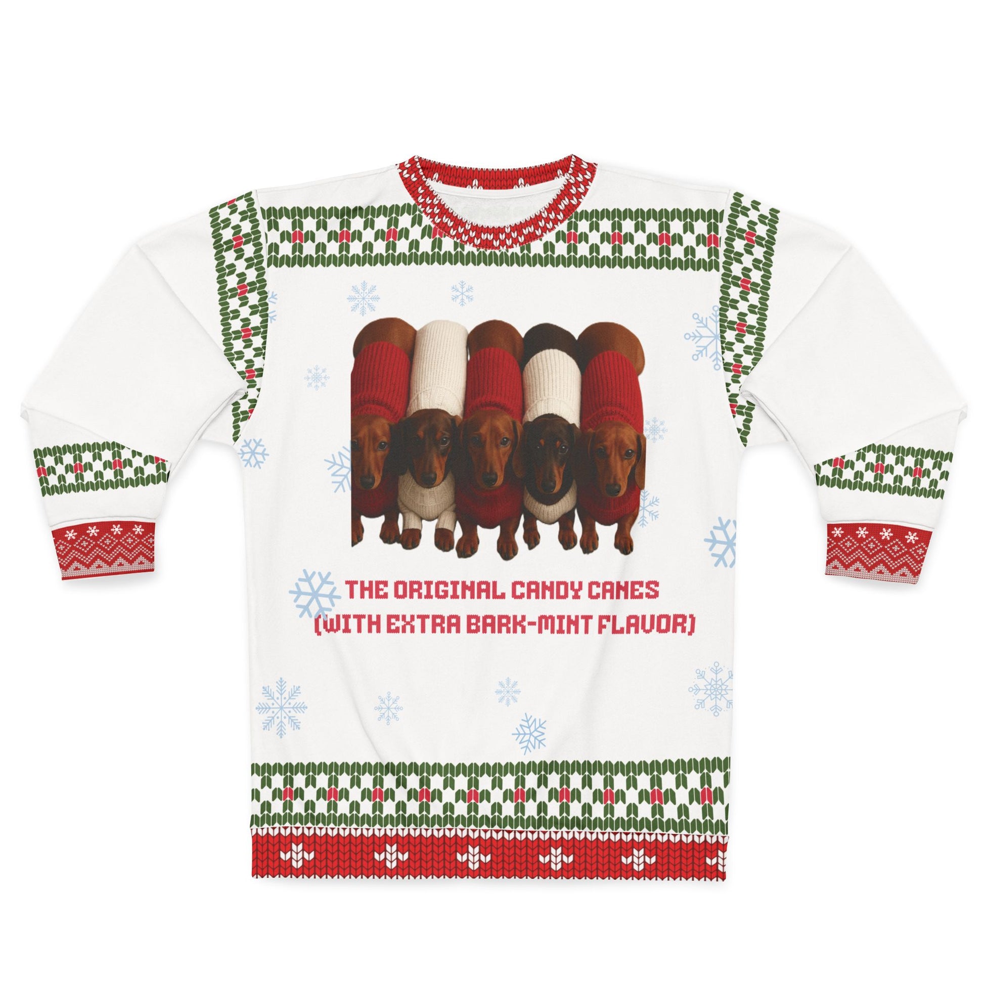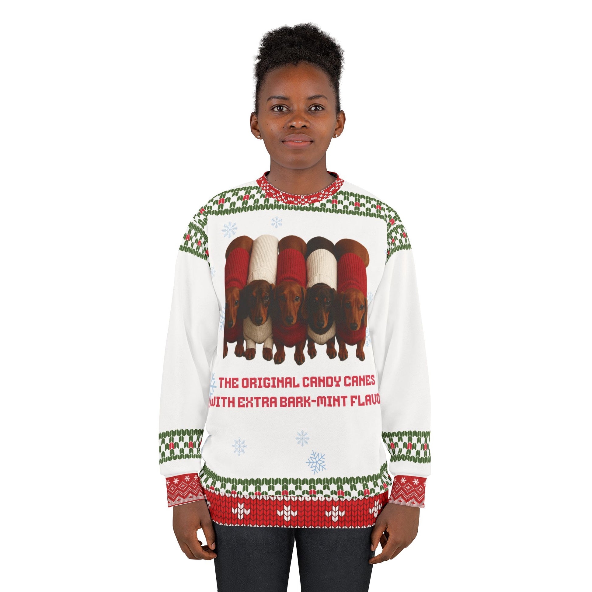 Dachshund Christmas Sweater • Funny Candy Cane Doxie Sweatshirt • Wiener Dog Holiday Sweater • Bark-Mint Flavor Xmas Gift for Dog Lovers