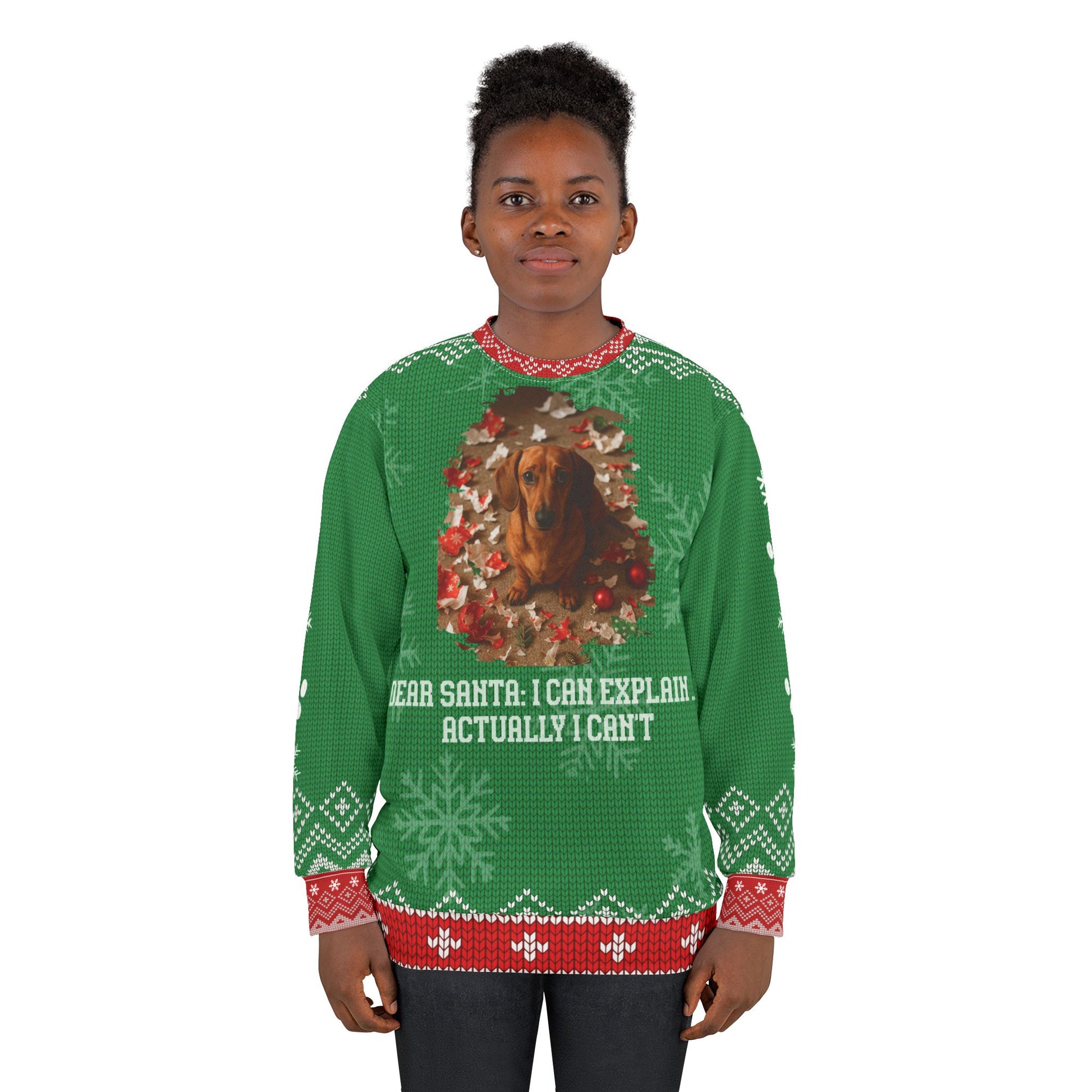 Dachshund Christmas Sweater • Funny “Dear Santa I Can’t Explain” Doxie Sweatshirt • Wiener Dog Holiday Sweater • Dog Lover Xmas Gift