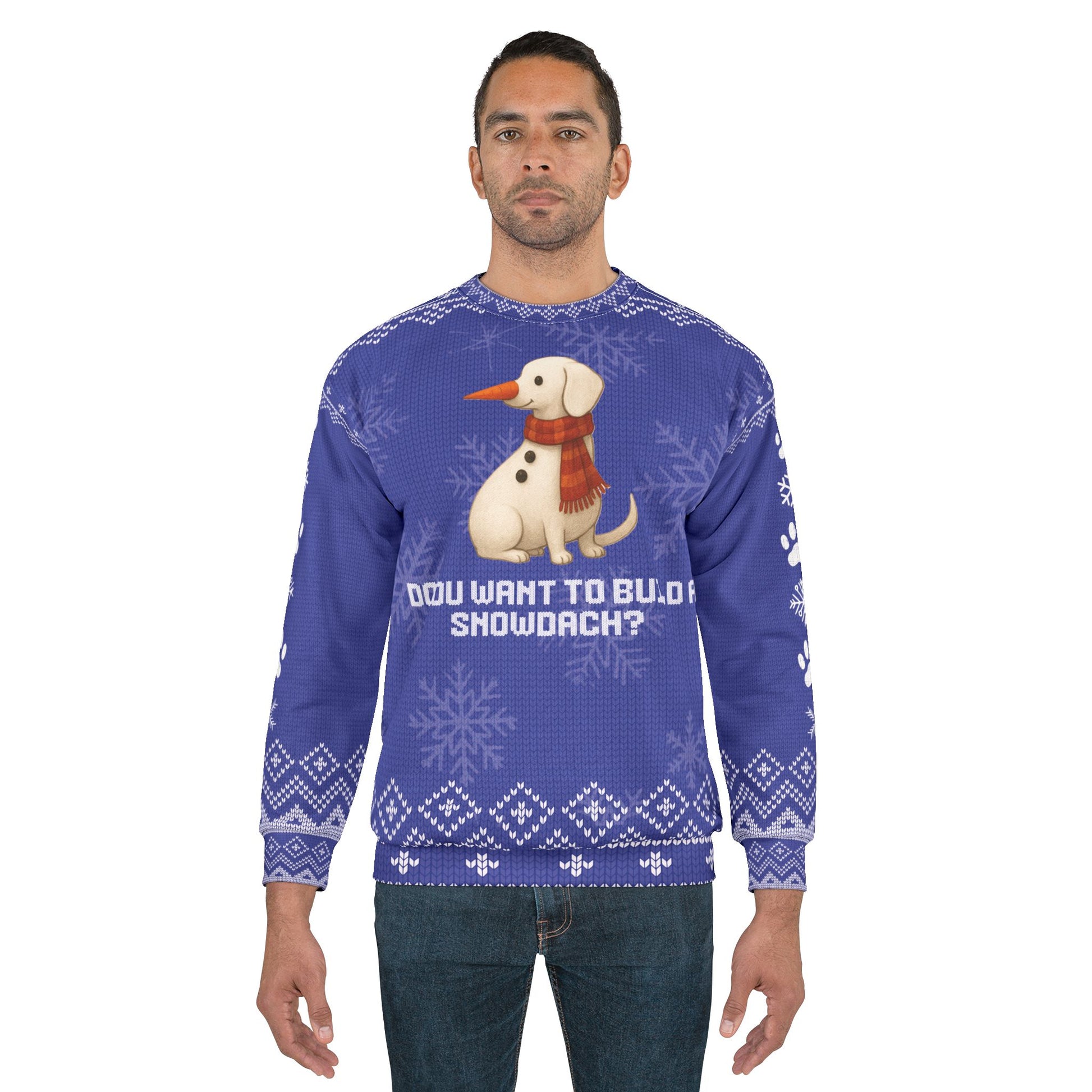 Turn winter magic into Dachshund magic with this irresistible “Do You Want To Build a Snowdach?” Christmas sweater! Featuring an adorable snowman-style Doxie complete with a carrot nose, coal buttons, and a cozy scarf, this festive design is guaranteed to melt hearts all season long.