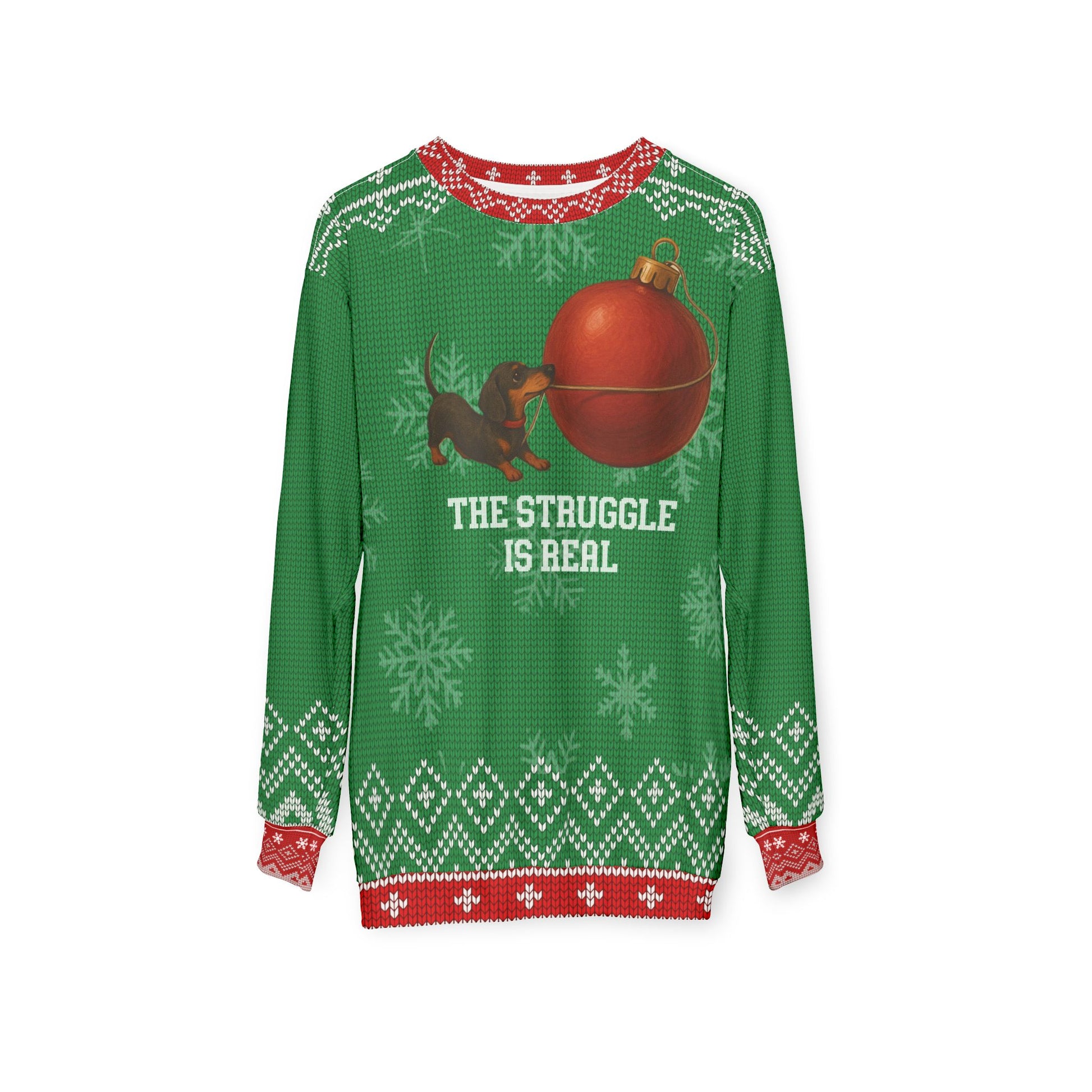 Dachshund Christmas Sweater – “The Struggle Is Real” Funny Holiday Sweatshirt