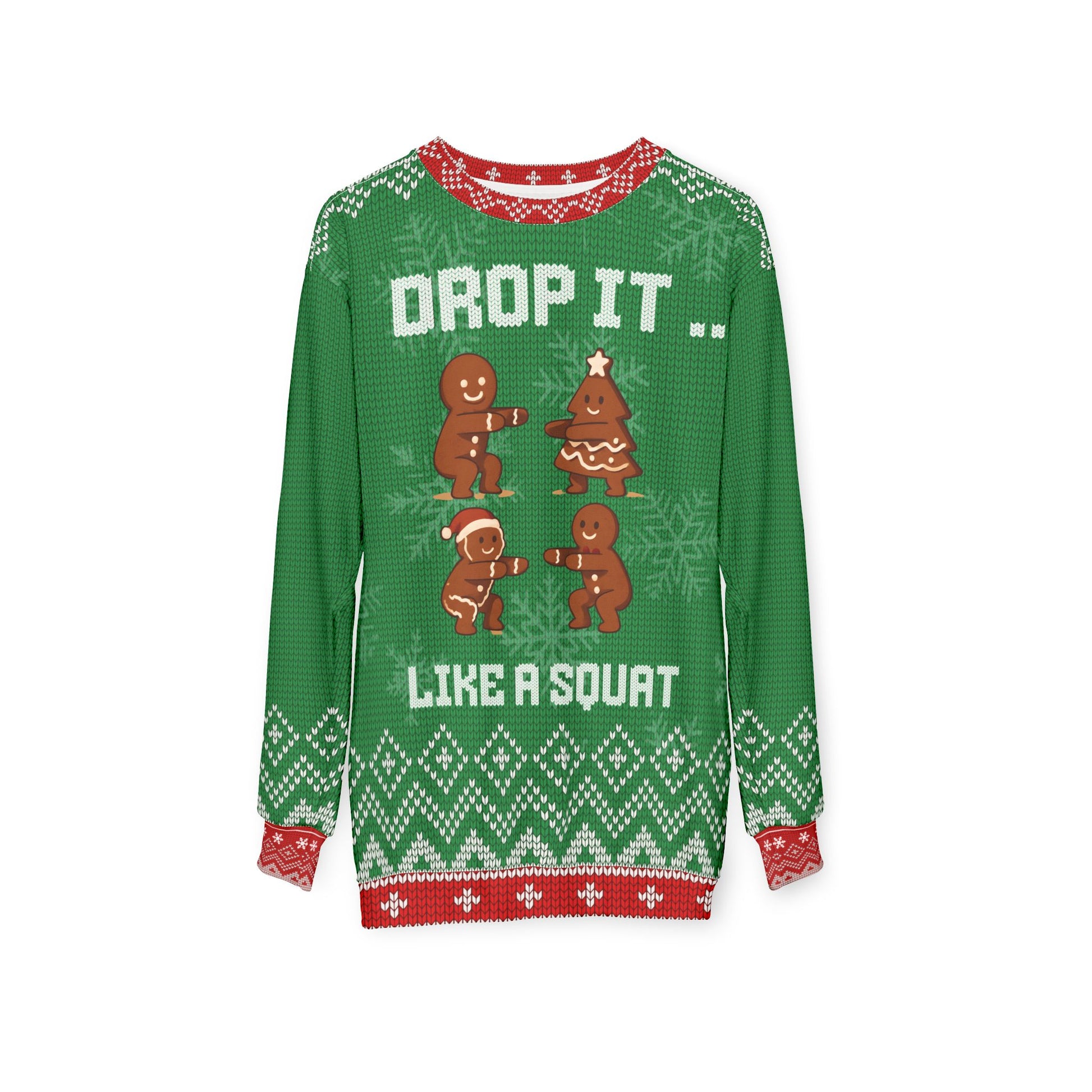 Drop It Like a Squat Funny CrossFit Ugly Christmas Sweater – Gym Lover Holiday Sweatshirt, Fitness Gift for Men & Women, Funny Workout Xmas Jumper**