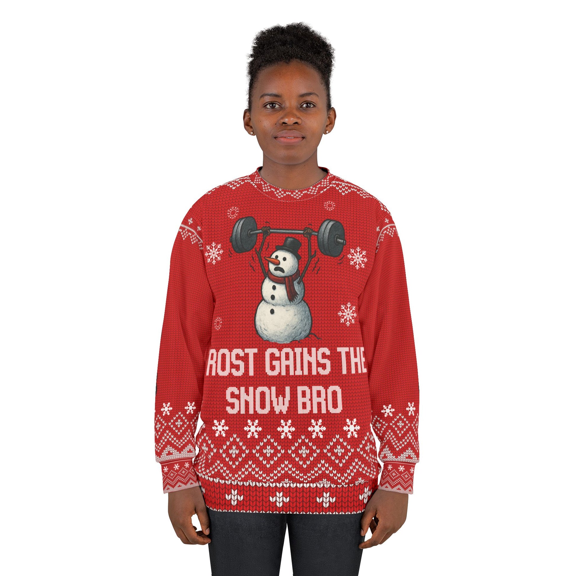 Frost Gains The Snow Bro Funny CrossFit Ugly Christmas Sweater – Gym Lover Holiday Sweatshirt, Fitness Christmas Gift, Bodybuilder Xmas Jumper