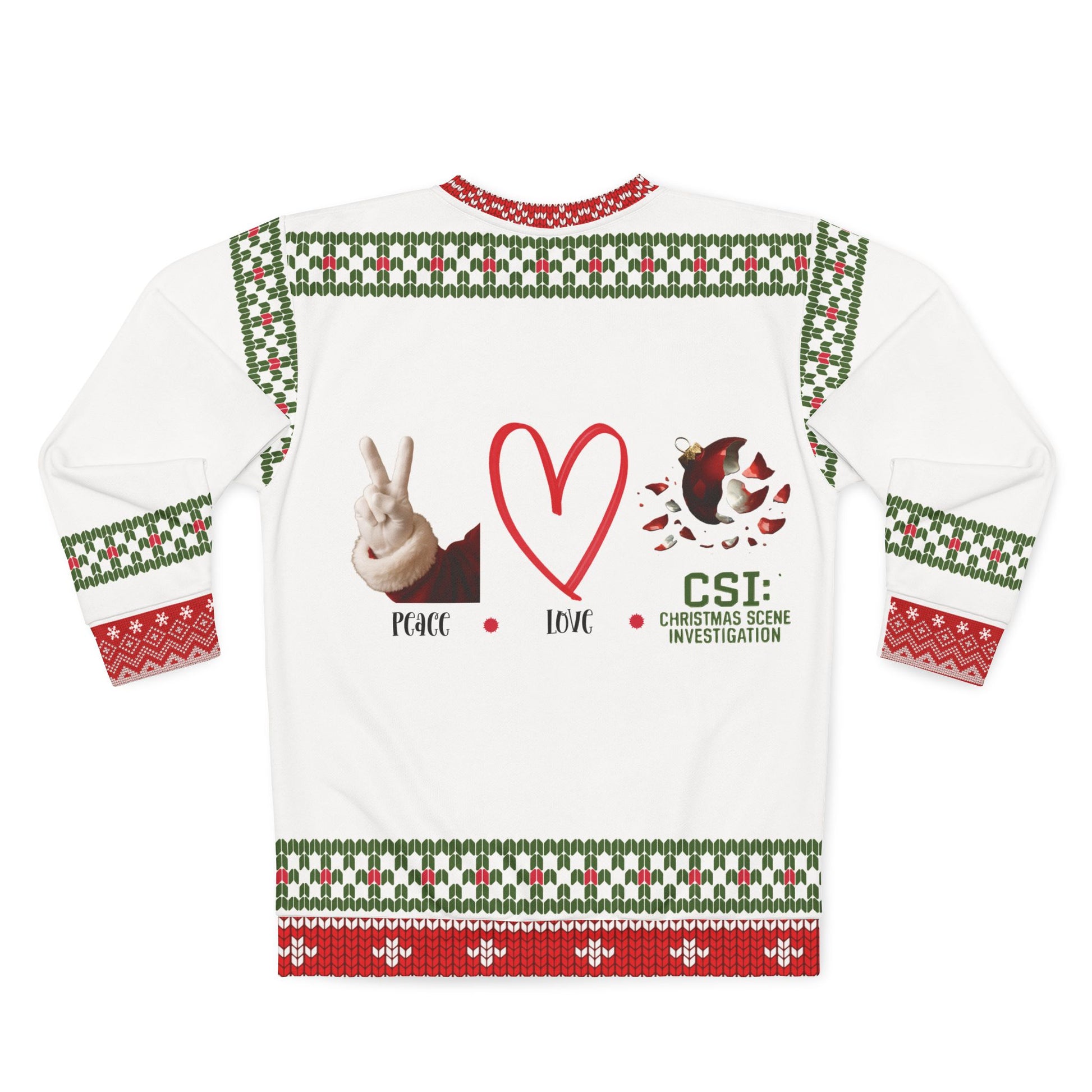 Perfect for ugly Christmas sweater parties, holiday gatherings, true crime fans, and anyone who appreciates a spooky twist on seasonal cheer, this cozy sweatshirt guaranteed to turn heads and spark laughs.