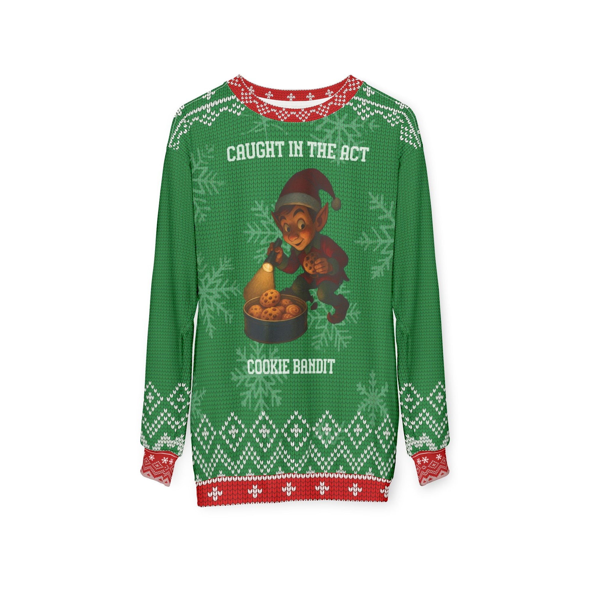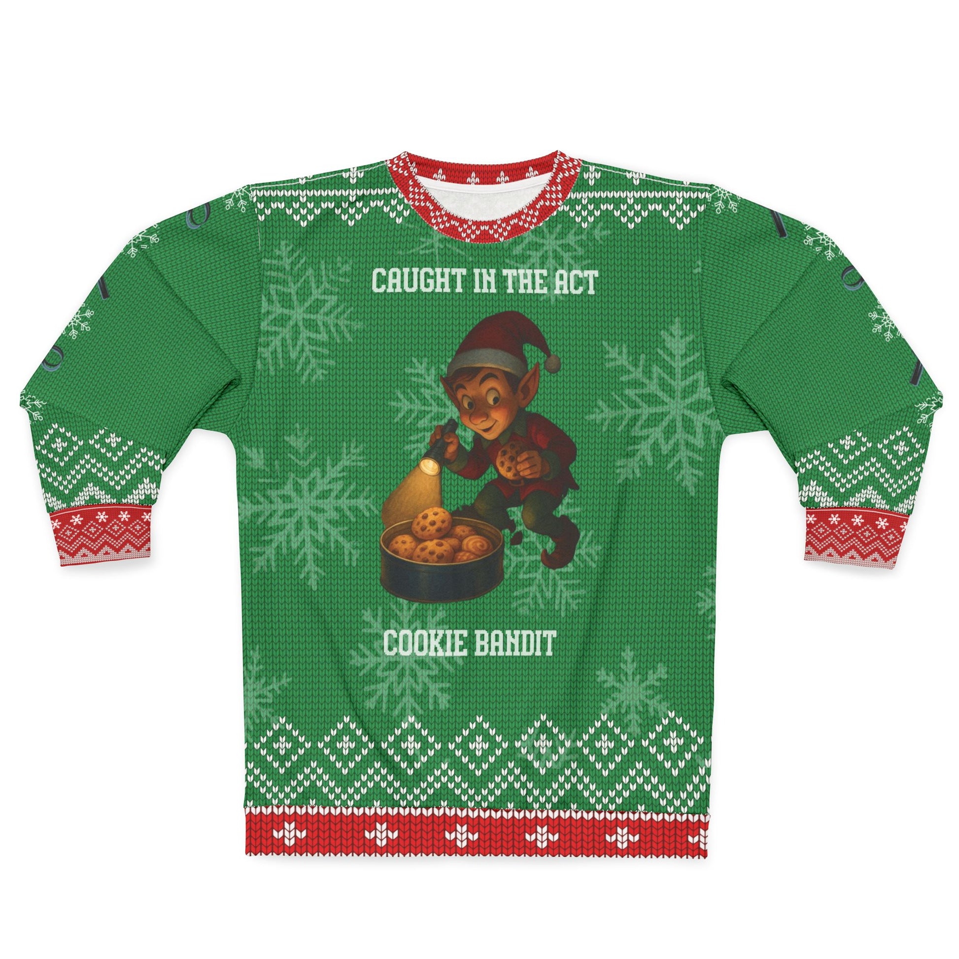 Funny Elf Christmas Sweater – “Caught in the Act: Cookie Bandit” Ugly Christmas Sweatshirt | Hilarious Holiday Sweater for Men & Women