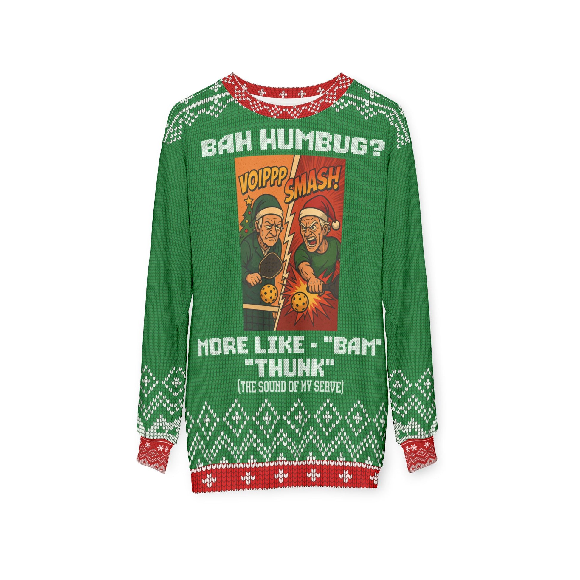 Funny Pickleball Ugly Christmas Sweater | Bah Humbug? More Like BAM THUNK Holiday Sweatshirt | Xmas Gift for Pickleball Players & Fans