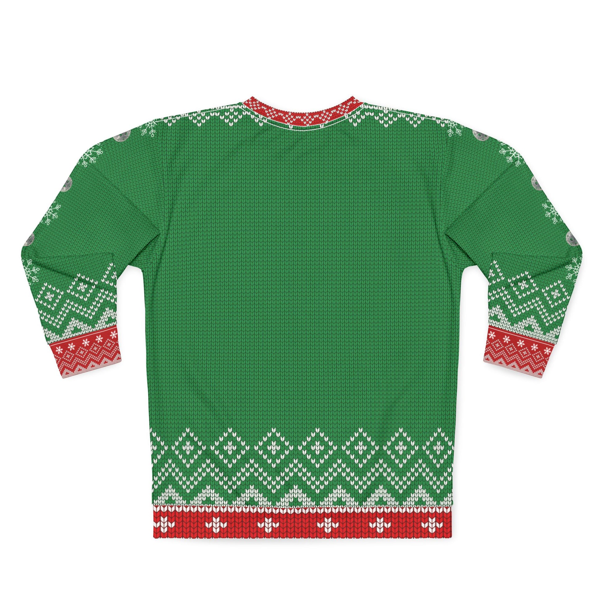 Perfectly cheeky, bright, and festive, this cozy green knitted-look sweatshirt is ideal for holiday parties, tournaments, Christmas photos, and gift-giving.