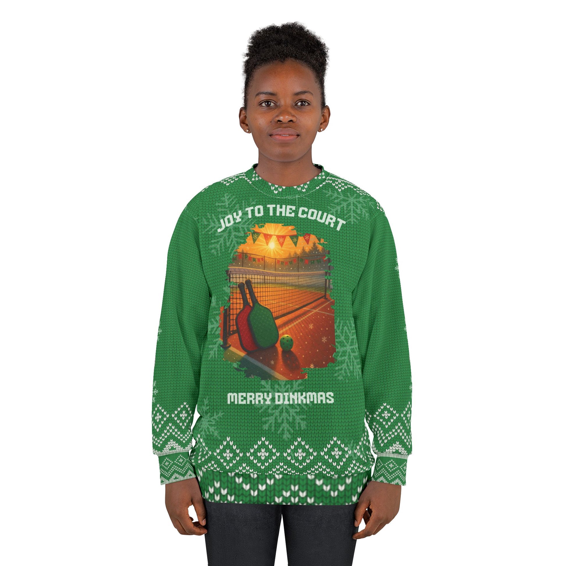 Funny Pickleball Ugly Christmas Sweater | Joy to the Court Merry Dinkmas Sweatshirt | Holiday Gift for Pickleball Players & Fans