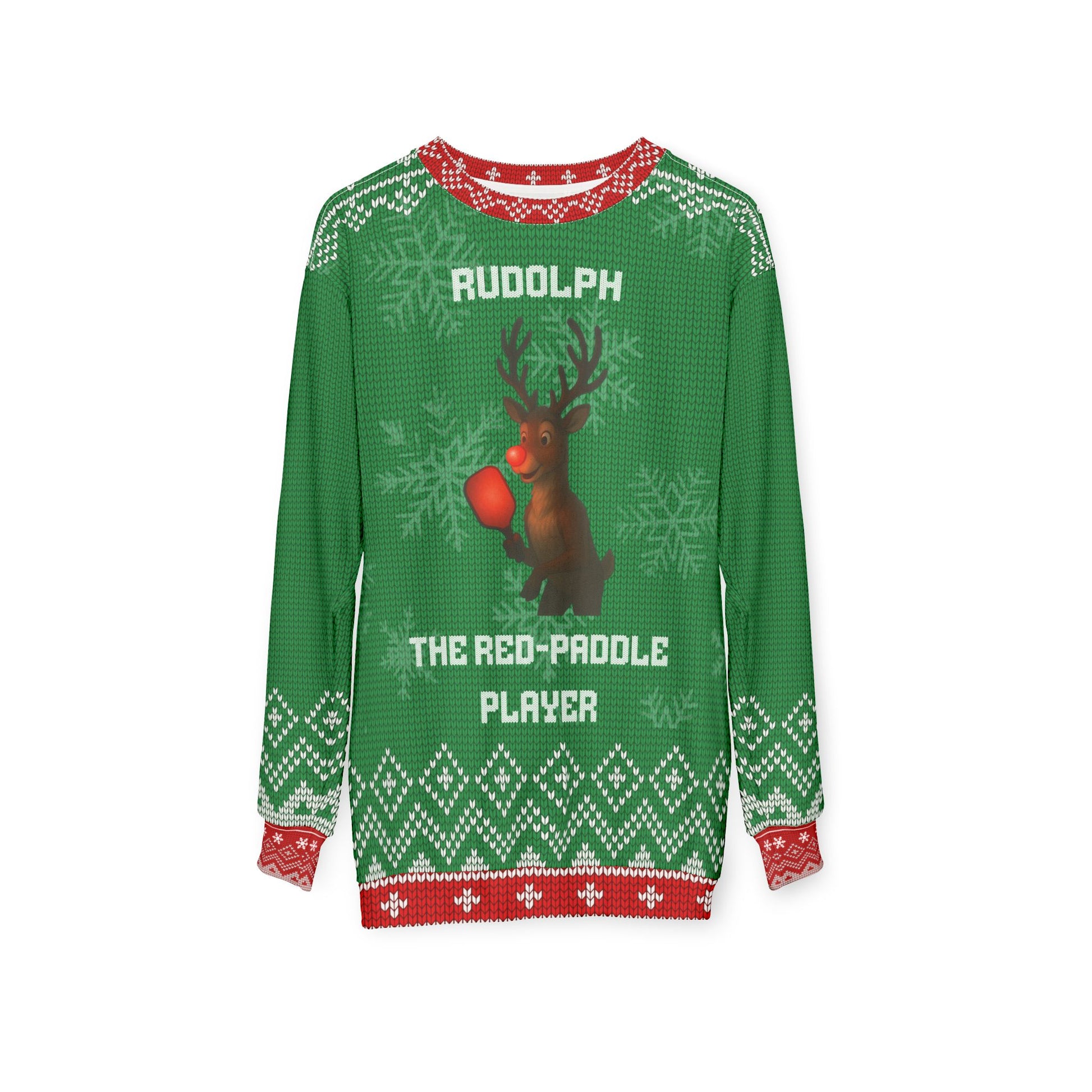 Funny Pickleball Ugly Christmas Sweater | Rudolph the Red-Paddle Player Sweatshirt | Holiday Gift for Pickleball Lovers