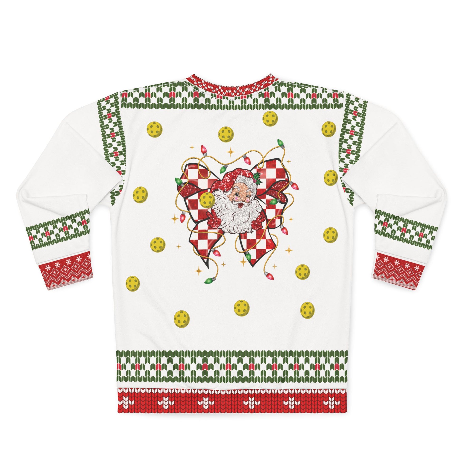 This festive sweatshirt is perfect for pickleball players, Dinkmas tournaments, and anyone who loves a punny holiday outfit. The cozy knit-style borders and bold Christmas colors make it the ideal top for ugly sweater parties, courtside photos, or gifting to your favorite pickleball fanatic.