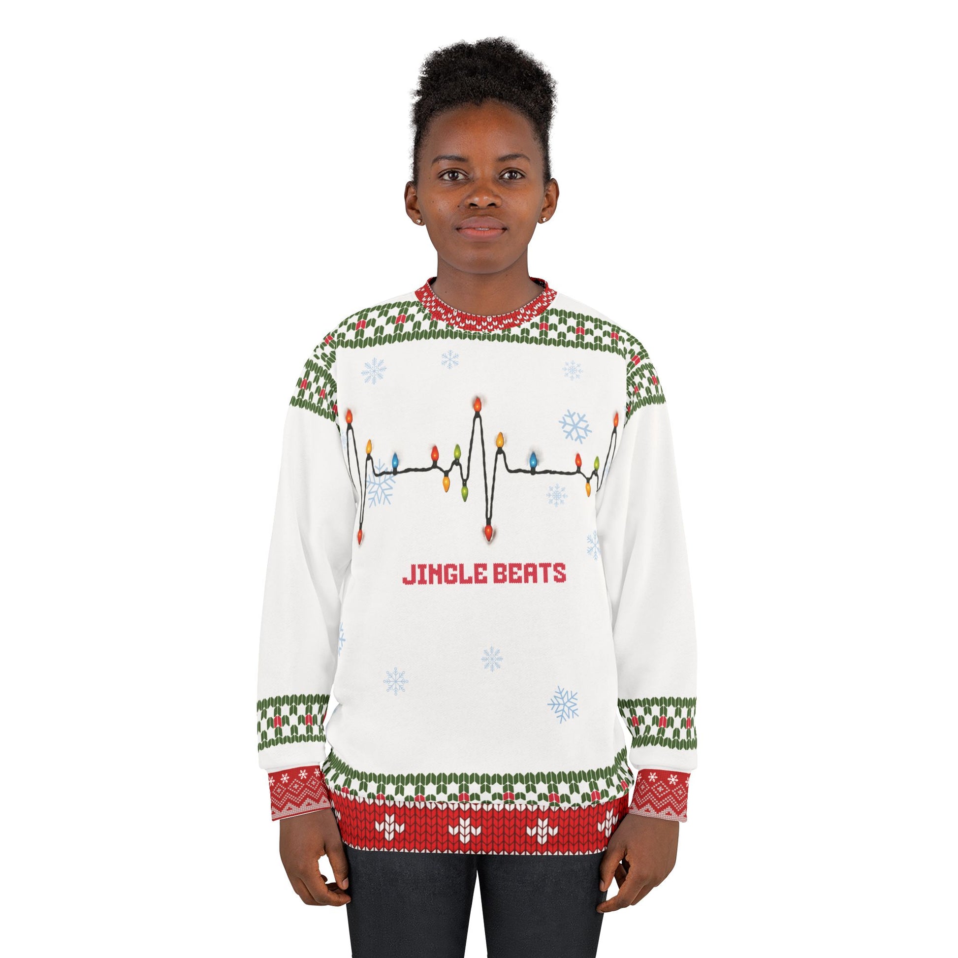 Jingle Beats Nurse Christmas Sweater | EKG Light Strand Medical Ugly Xmas Sweater | Funny RN LPN CNA Holiday Sweatshirt