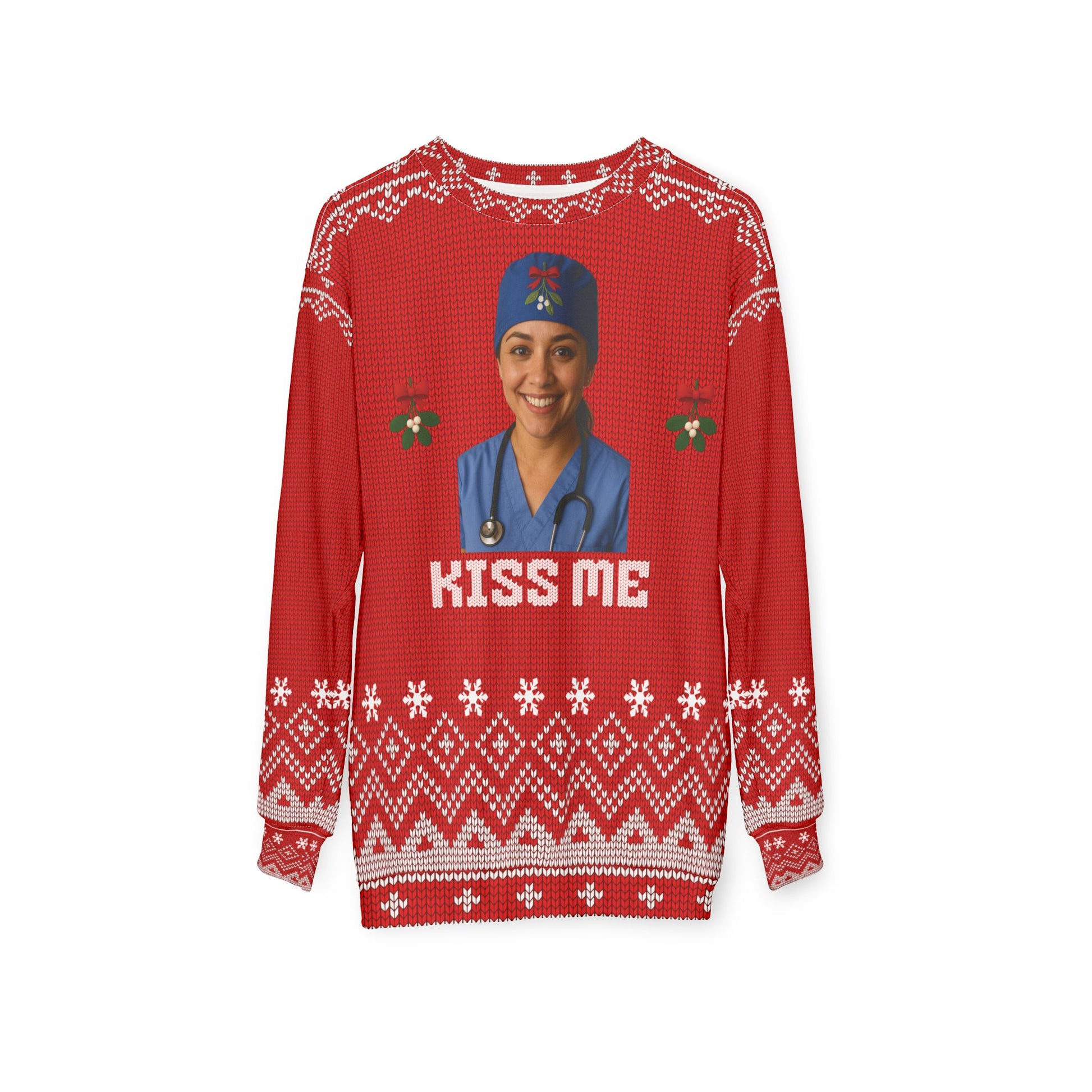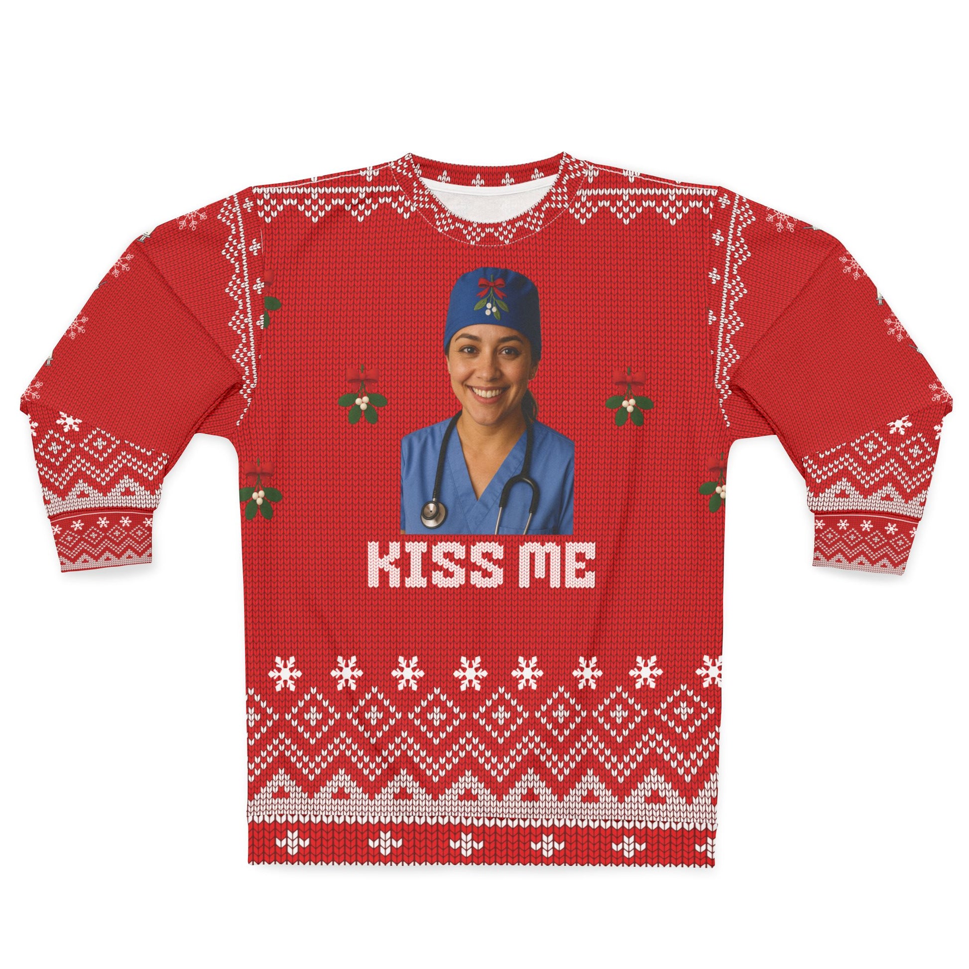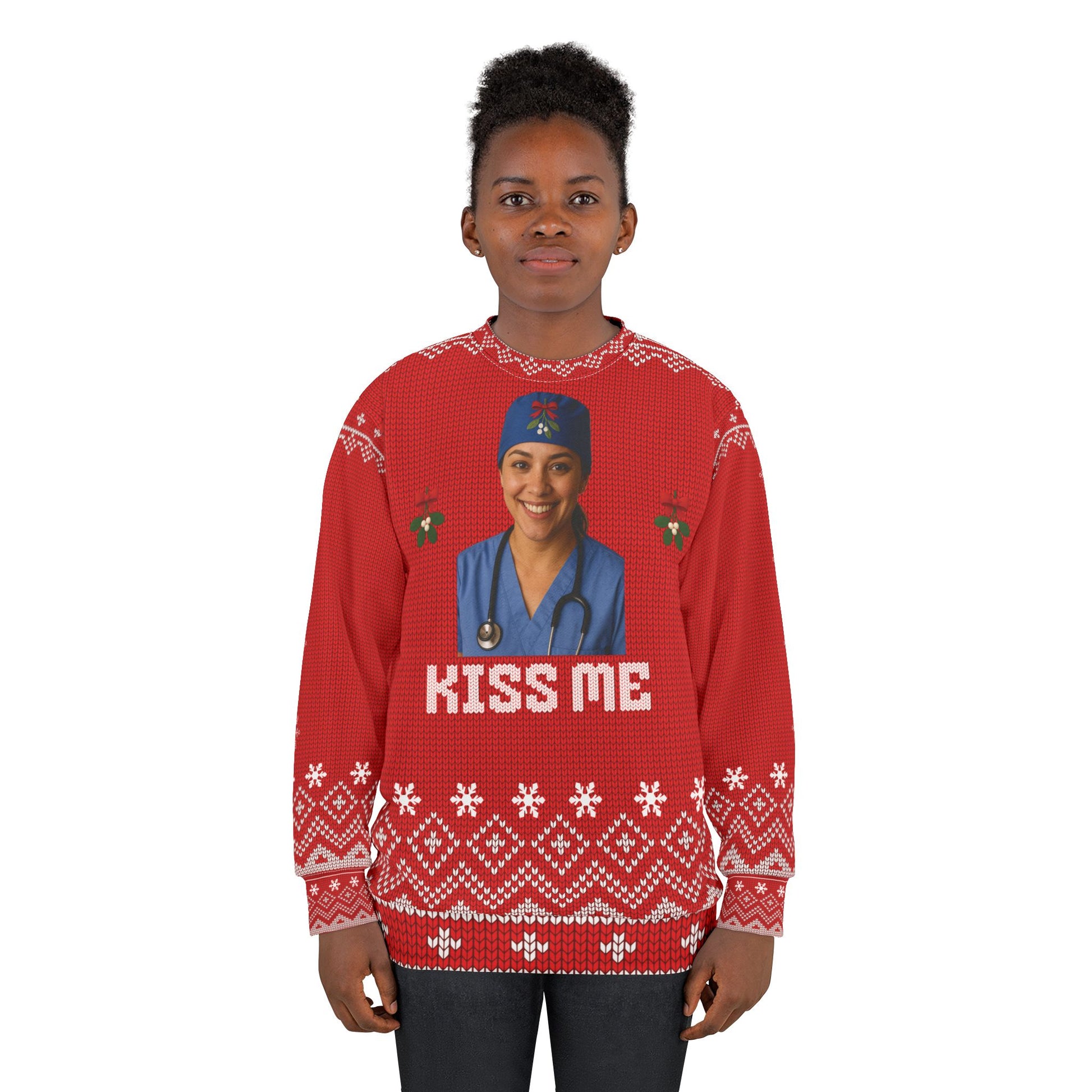 Kiss Me Nurse Christmas Sweater | Mistletoe RN LPN CNA Ugly Xmas Sweater | Funny Medical Holiday Sweatshirt | Nurse Christmas Gift