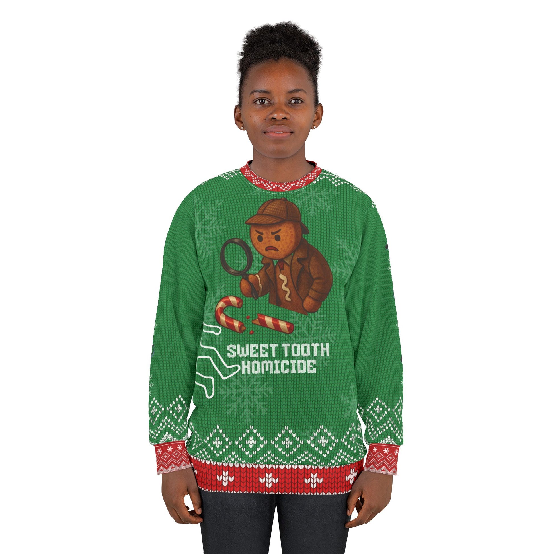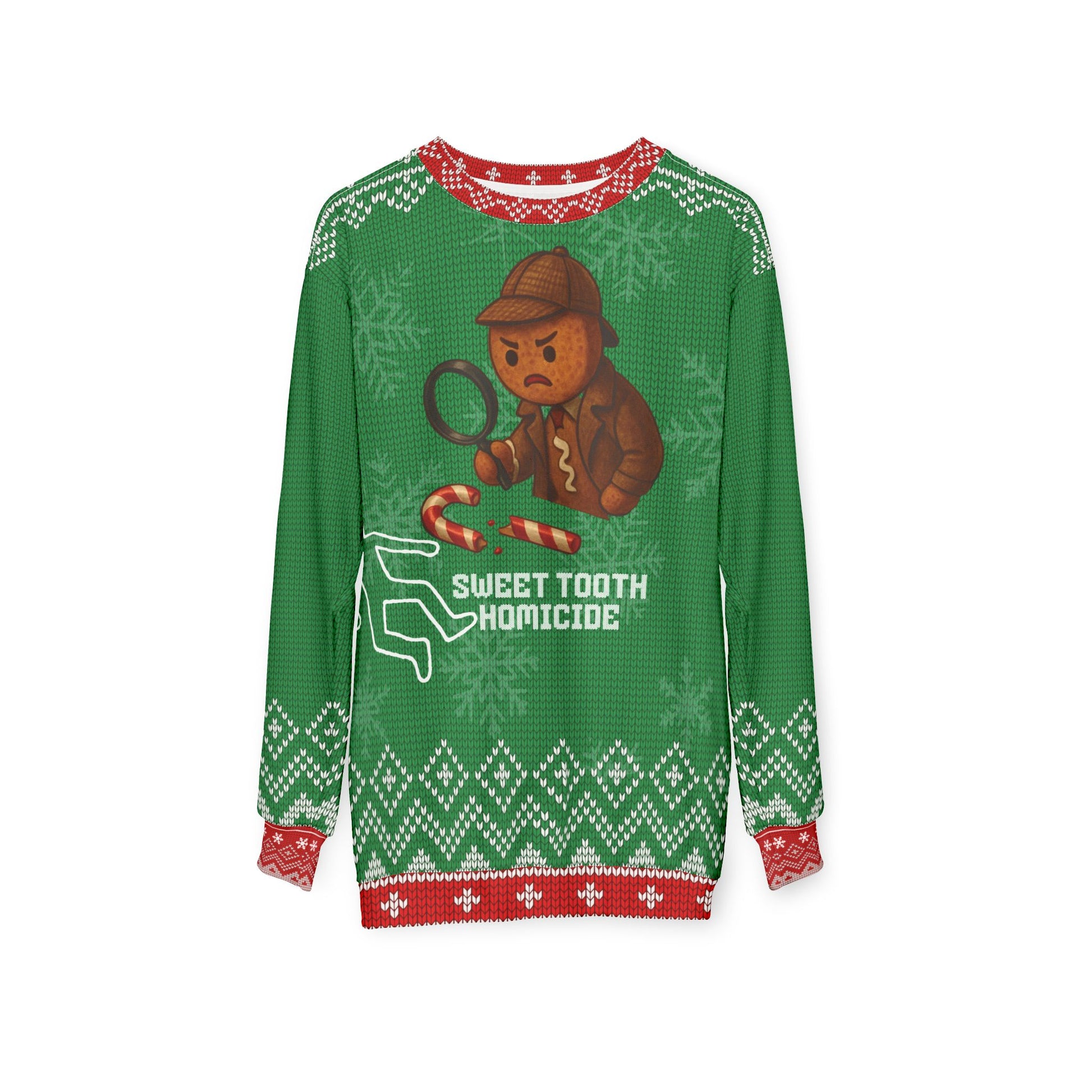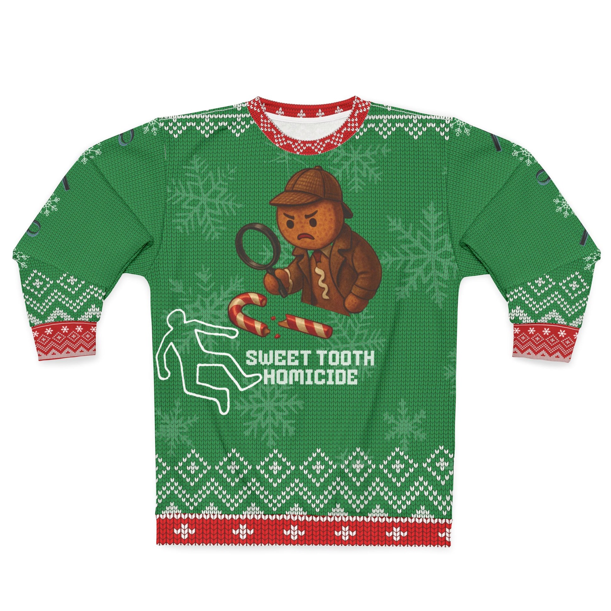 Sweet Tooth Homicide Ugly Christmas Sweater – Funny Gingerbread Crime Scene Sweatshirt | True Crime Christmas Sweater for Holiday Mystery Fans