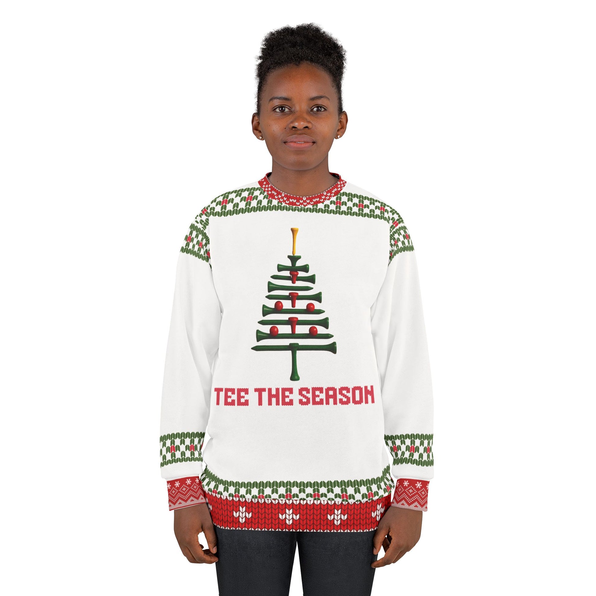 Celebrate the holidays in tee-rific style with the “Tee the Season” Ugly Christmas Sweater! Perfect for golfers who can’t resist a good pun, this cozy sweatshirt brings together festive cheer and golf humor in a design that’s guaranteed to get laughs on and off the course.