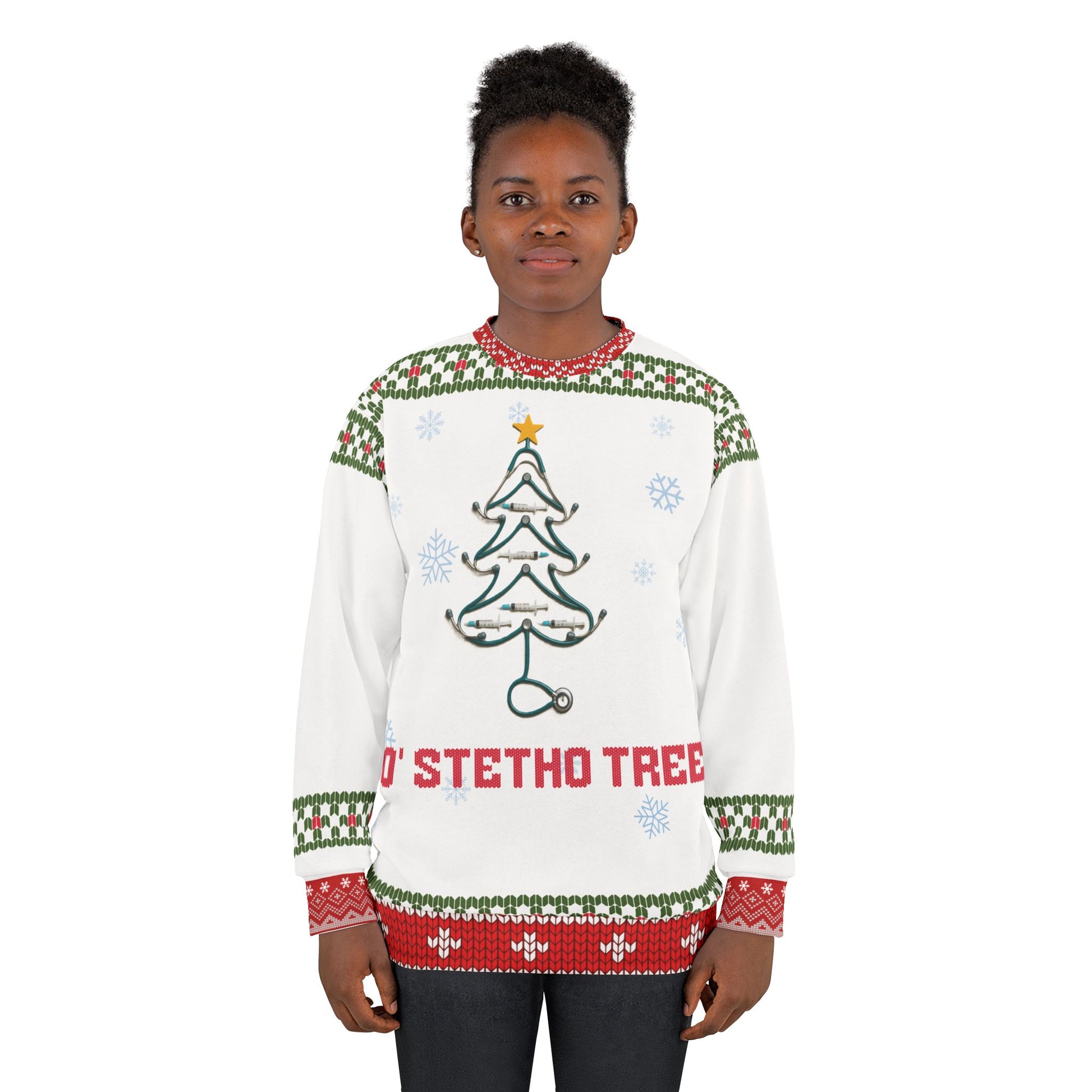 Ugly Christmas Sweater for Nurses | O’ Stetho Tree Stethoscope Holiday Sweatshirt | Funny Nurse Xmas Gift | RN LPN Medical Staff Sweater